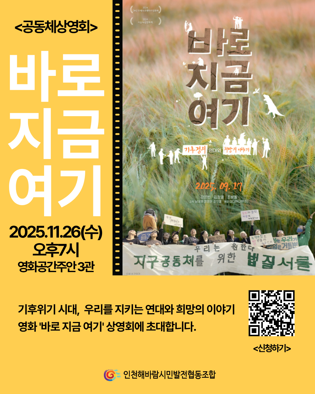 지난 11월 26일 수요일 저녁, 영화공간주안에서 영화 <바로 지금 여기> 공동체 상영회가 열렸는데요.